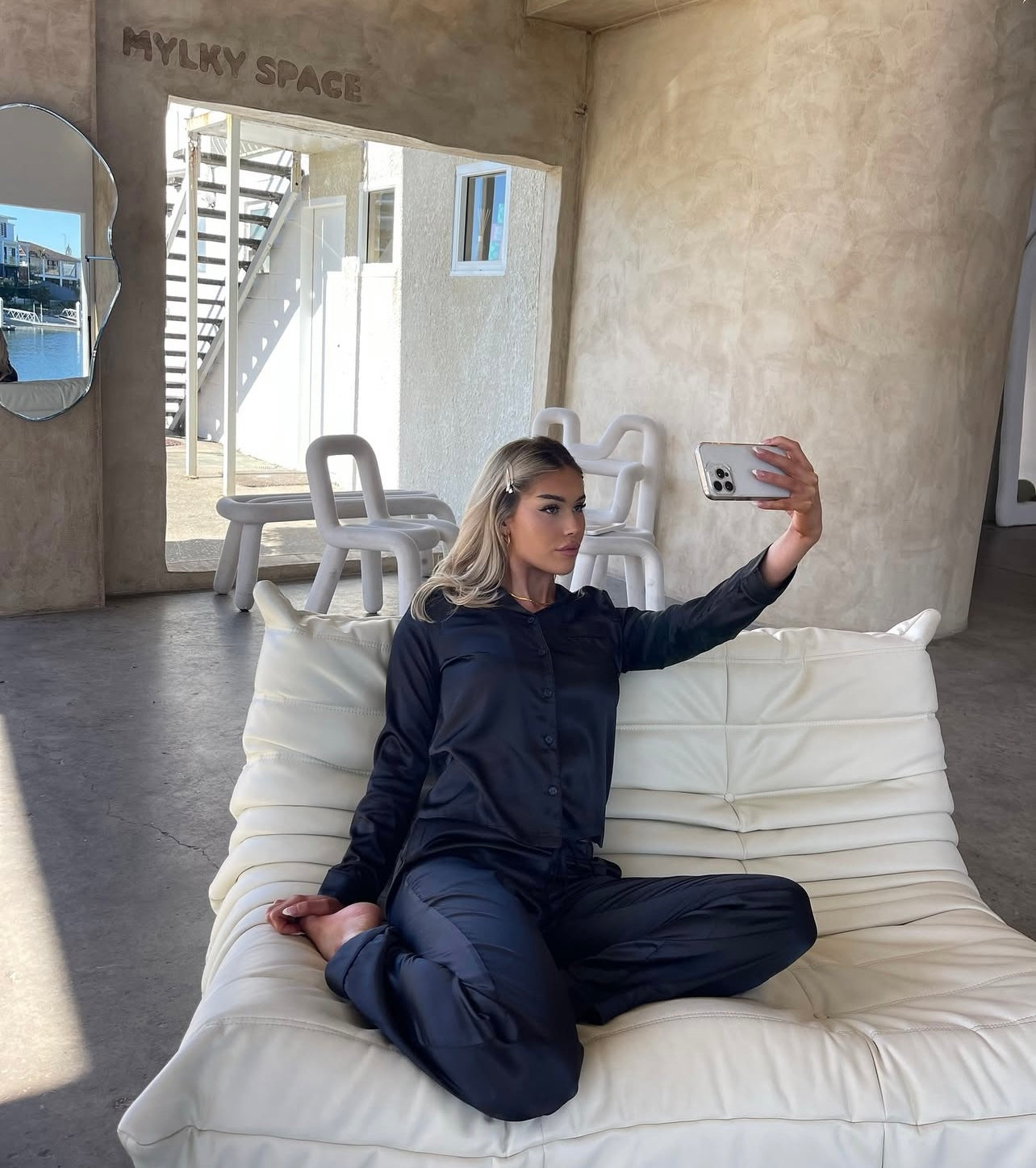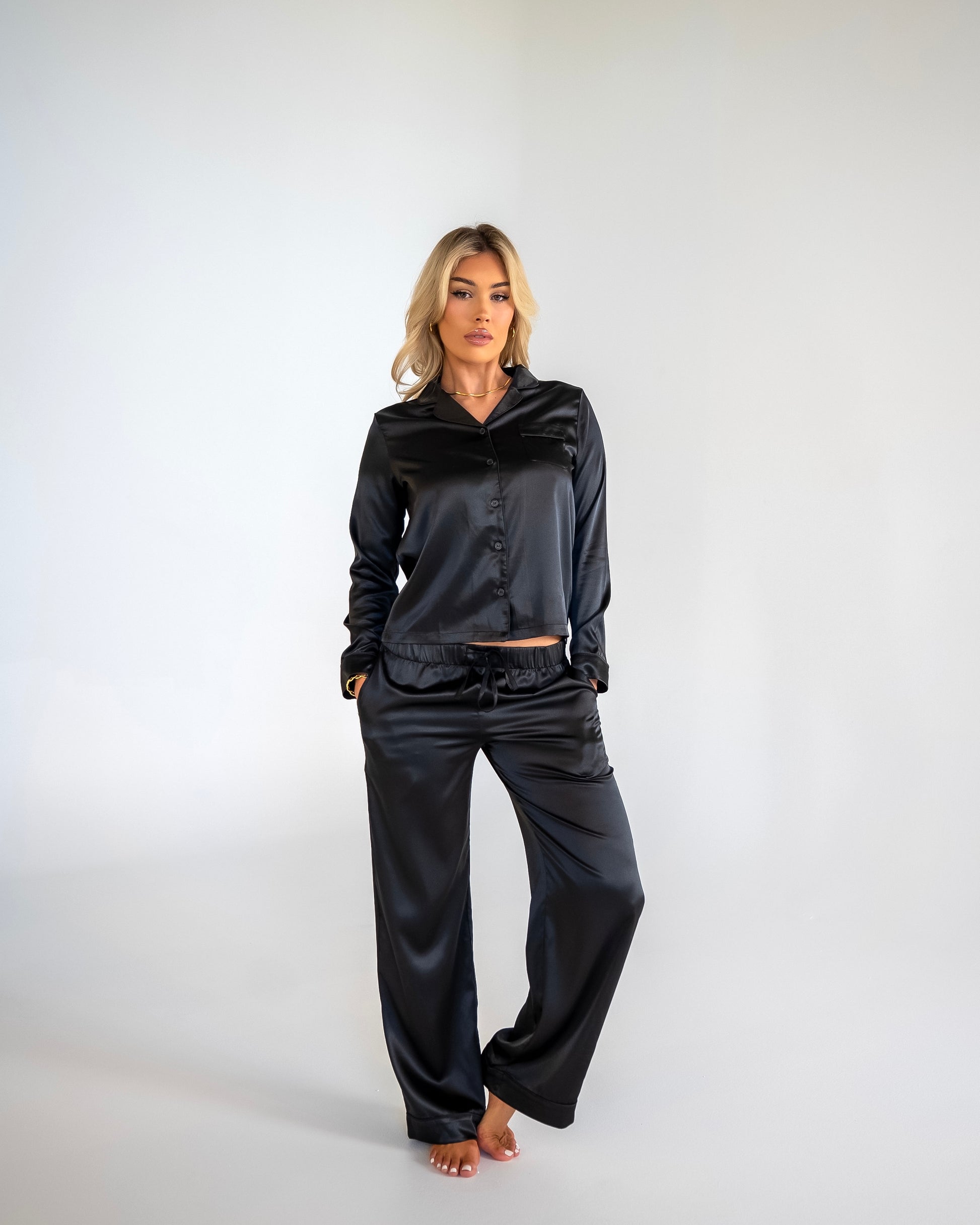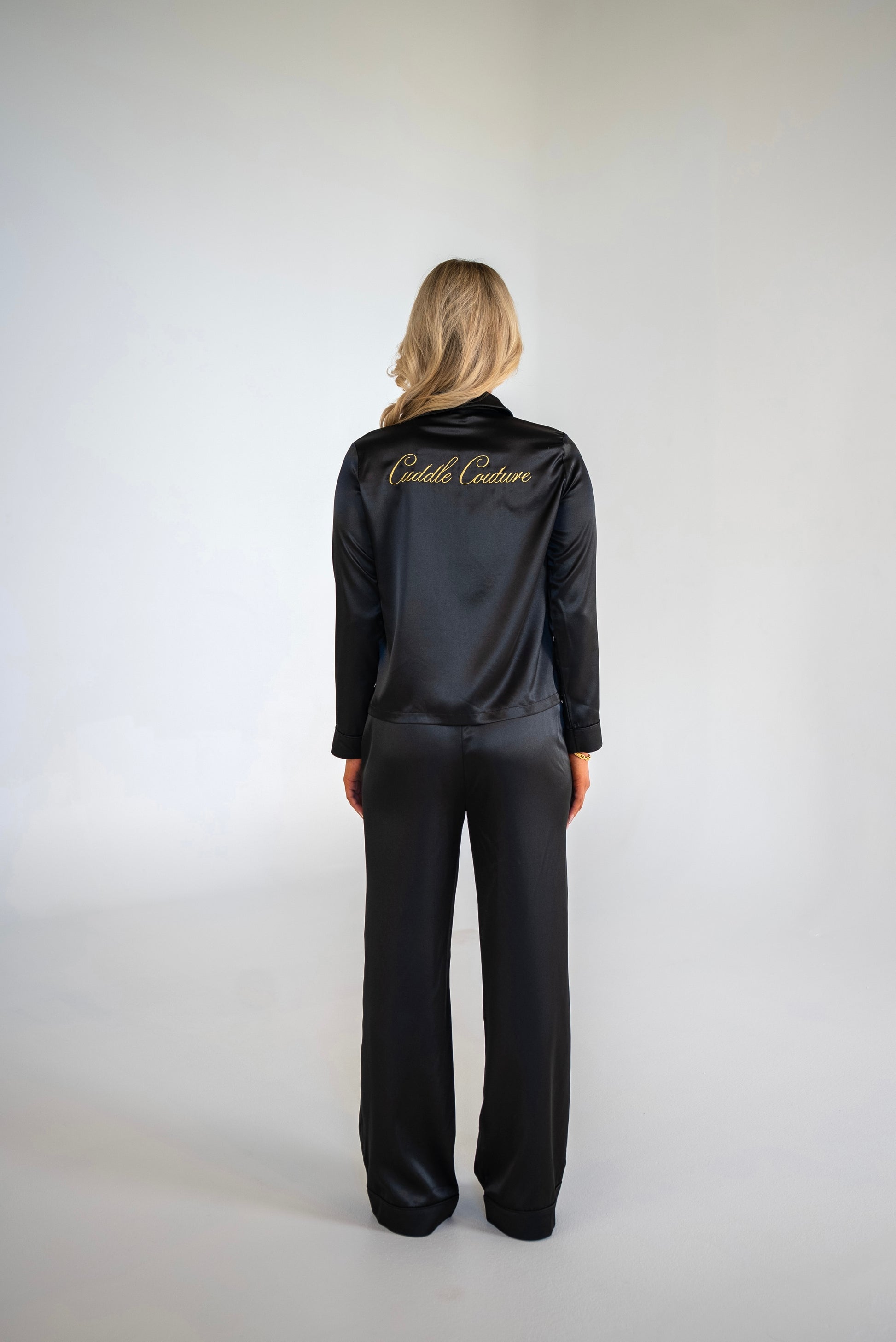 Step into your power with the Cuddle Couture After Hours PJ Top. Crafted from silky black satin and finished with delicate gold embroidery of Cuddle Couture, this piece is designed for women who embrace luxury, confidence, and feminine strength. Cool in summer, cozy in winter — the After Hours Top is more than loungewear; it’s elegance and allure stitched into every detail. Complete the look with the matching After Hours PJ Pants.